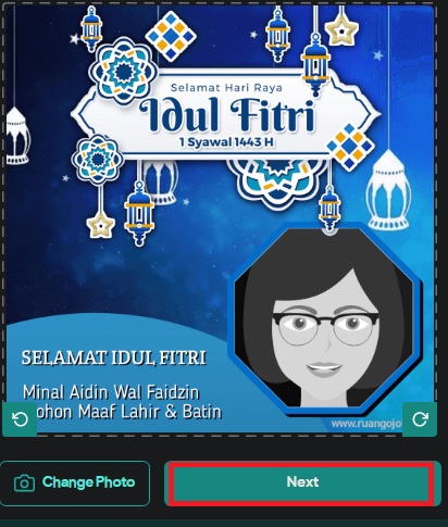 4. Setelah itu Twibbon Ucapan Hari Raya yang anda download siap untuk dibagikan ke teman maupun kerabat bisa melalui media sosial seperti facebook, instagram, twitter maupun facebook.
